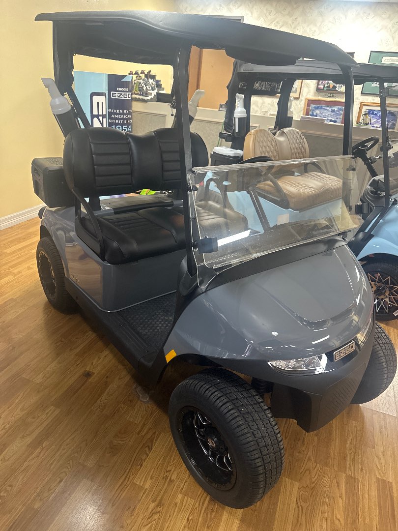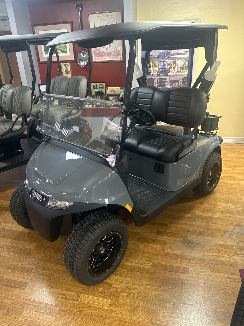 The 2025 E-Z-GO RXV Elite, powered by an advanced 56.7-Volt AC motor with a 56V lithium battery, promises exceptional performance. Its sleek design and durability are complemented by a welded steel frame with Durashield Powder-Coat Protection.